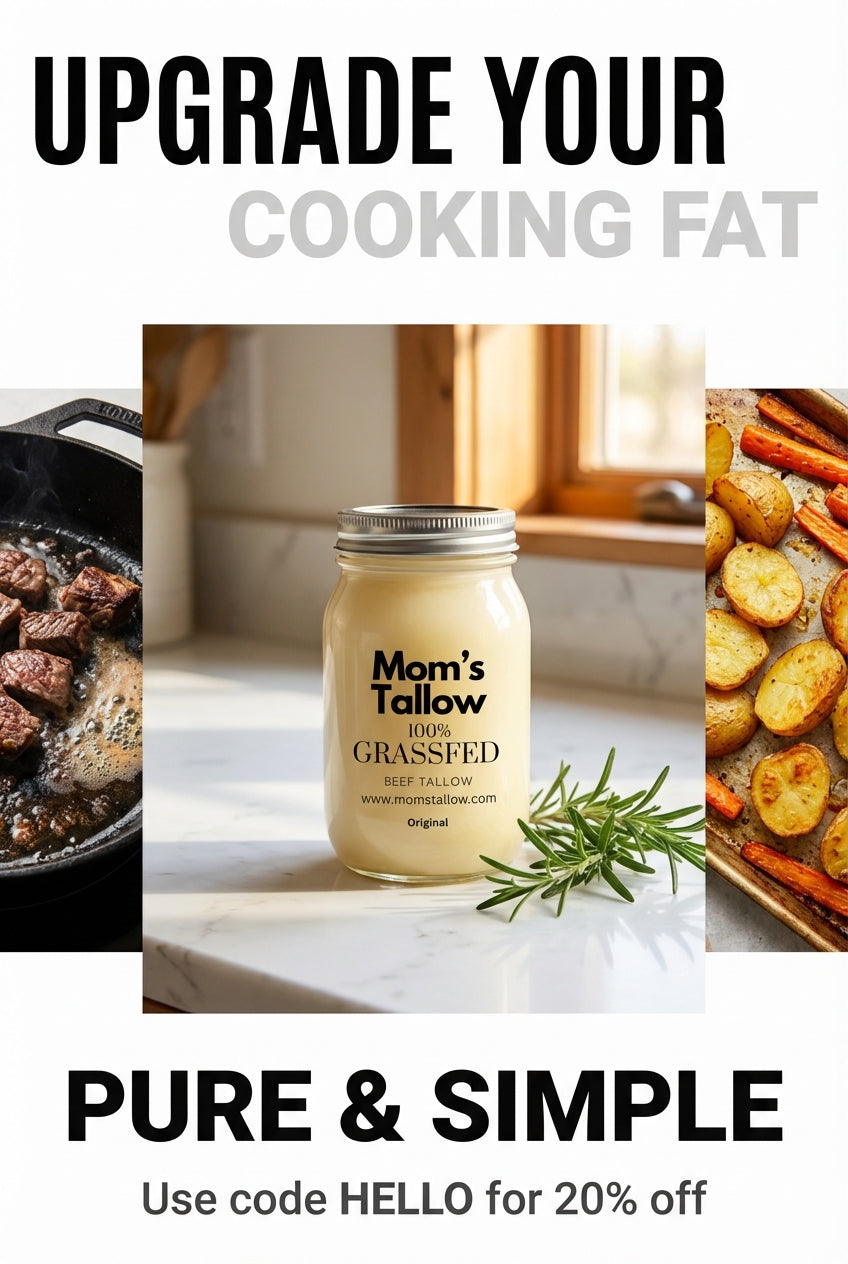 Mom's 100% Grass-Fed Beef Tallow is the natural cooking fat you've been missing. Sourced from 100% grass-fed, pasture-raised cattle, this tallow is free from additives, hormones, and chemicals. Whether you're frying, roasting, or sautéing, it provides a clean, delicious alternative to processed oils. With a high smoke point, it's perfect for high-heat cooking, making everything from meats to vegetables more flavorful, tender, and nutritious.